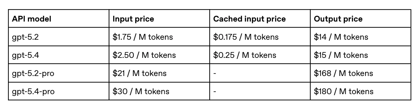 The significantly more expensive GPT-5.4 Pro will only be available in ChatGPT and the API, but not in Codex. That may be for the better. At $30/$180 per million input/output tokens (GPT-5.2 Pro was priced at $21/$168), 5.4 Pro is OpenAI’s most expensive model yet, and you don’t want to be surprised by those bills.